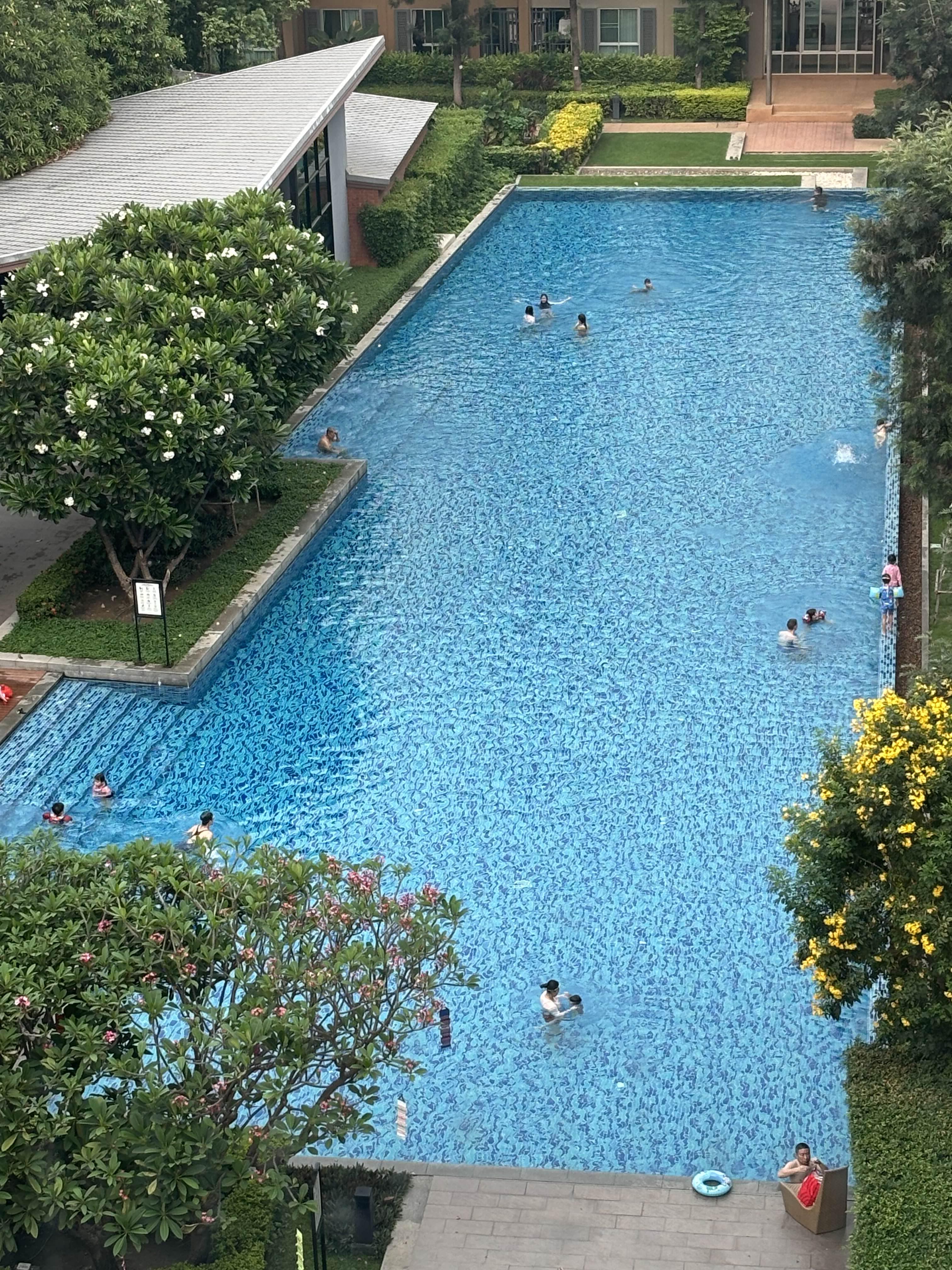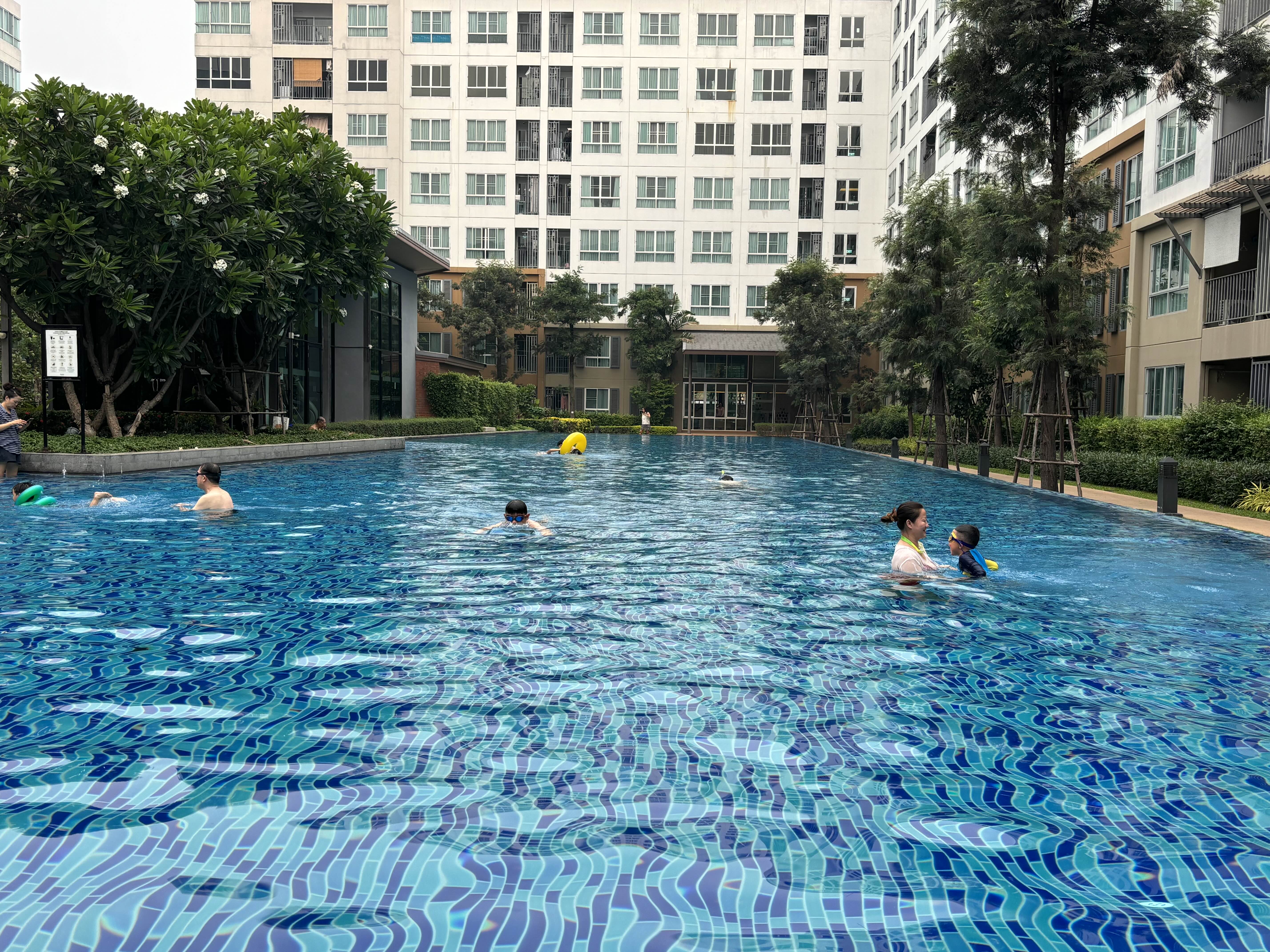 풀에는 역시 이 시간대의 주인공인 아이들이 수영을 하느라 신나 있었다