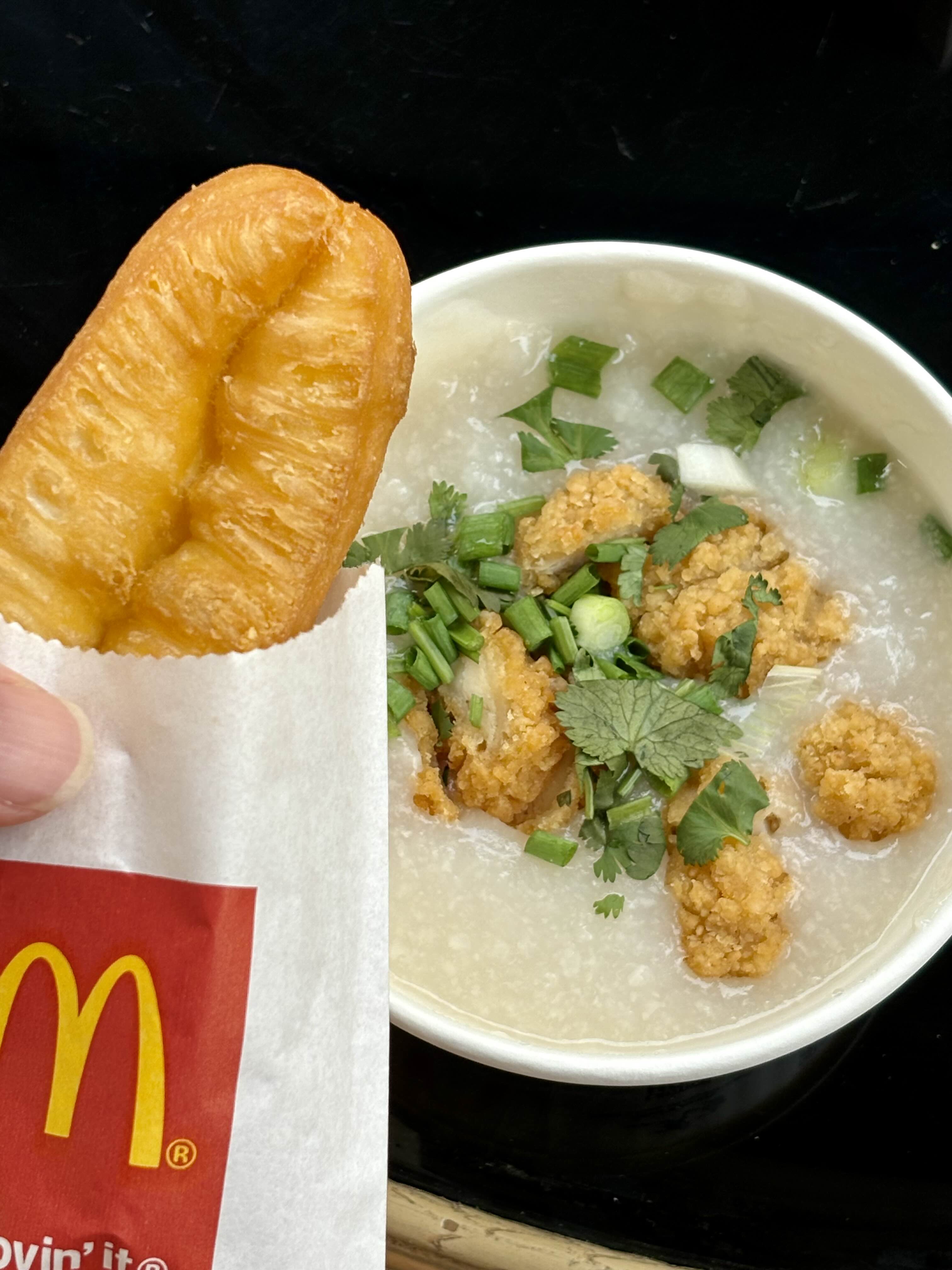 처음으로 먹었던게 빠이에서 중국인 마을 일출을 보고 내려오면서 노점에서 죽과 함께였었는데 오랫만에 보게 되어 반갑기도 했고 배달이 된다기에 맥도날드에 주문을 했다