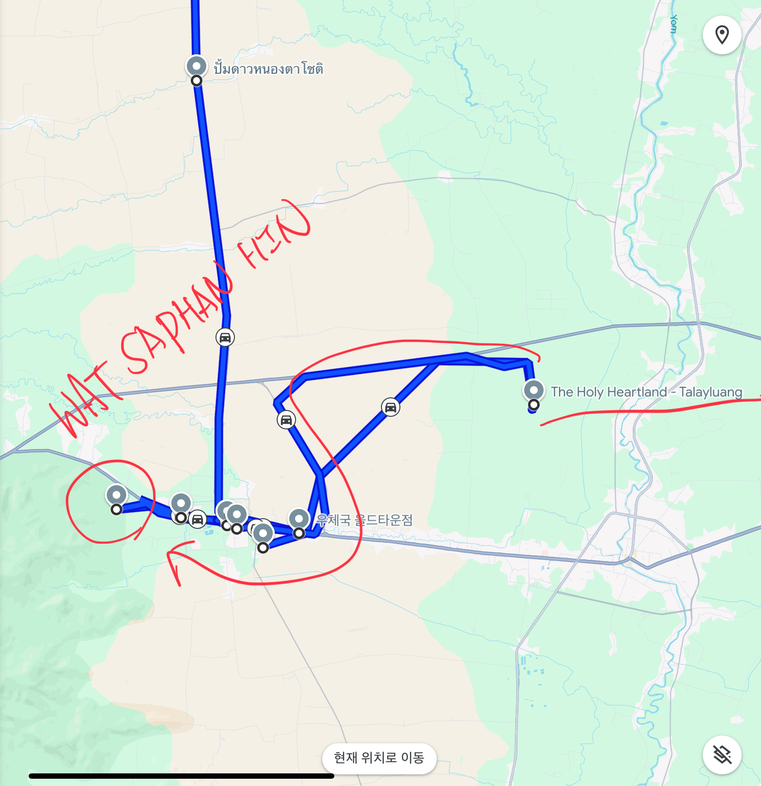 아래 지도와 같이 수코타이 역사공원과는 거리가 좀 떨어져 있다 인터넷 글엔 자전거로 다녀왔다는 사람이 있기도 했는데 바이크로 다녀온 사람으로선 정말 대단해 보일 정도로 가깝지는 않았다