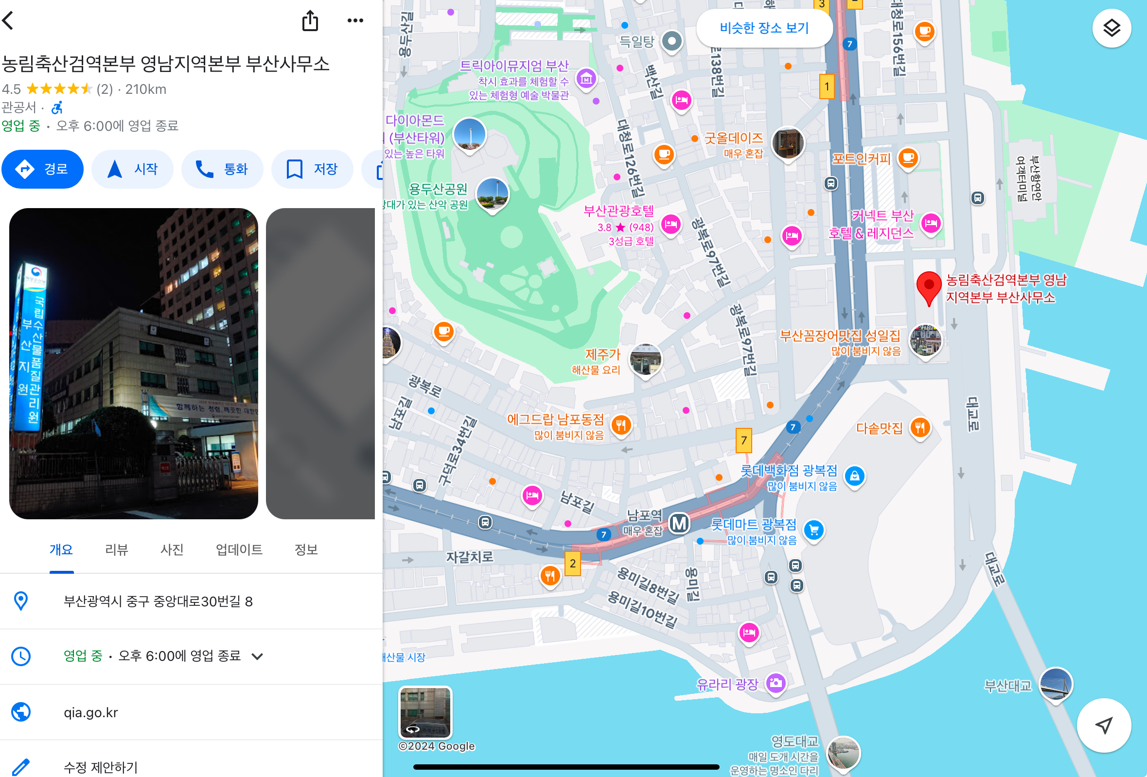 해운대로부터 더 가까운곳에 사무소가(농림축산검역본부 신선대 사무소) 있으니 거기로 가서 발급받아도 된다는 추가 안내를 주시기 위해서였습니다