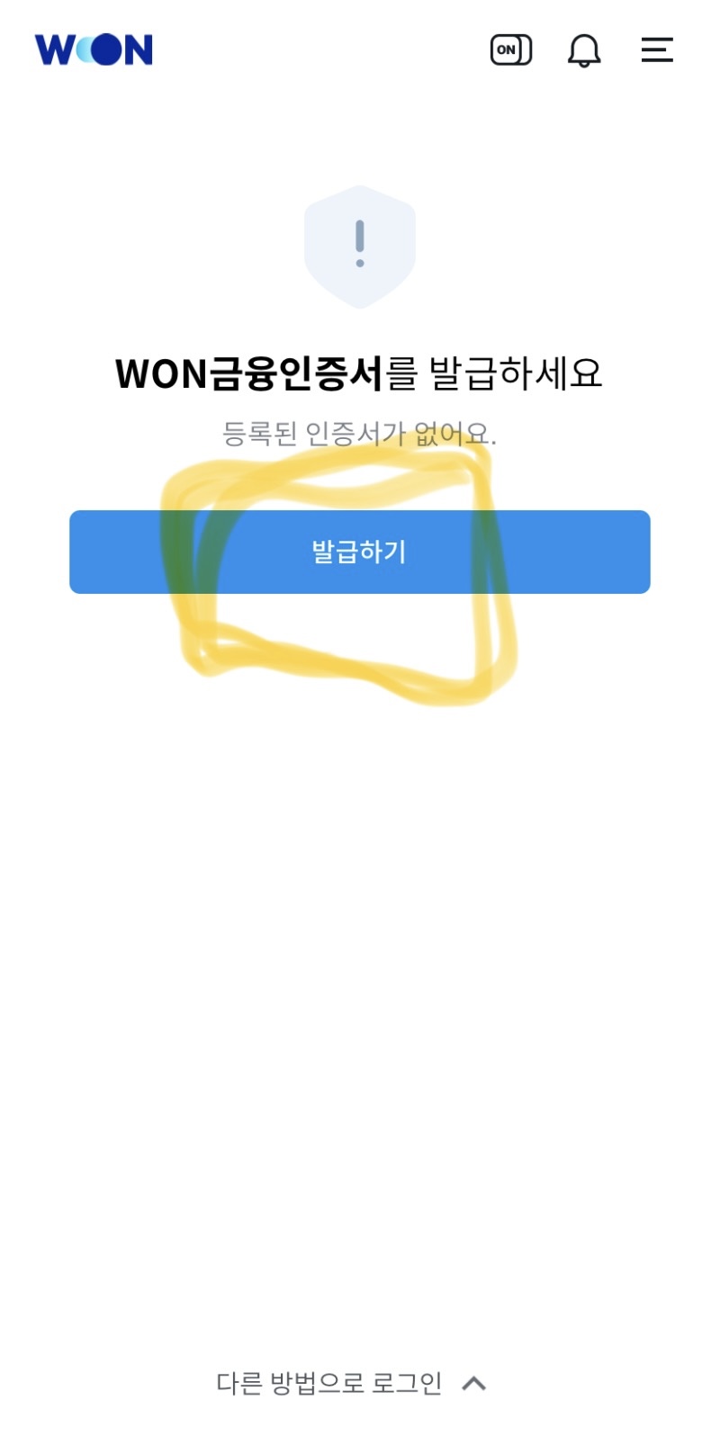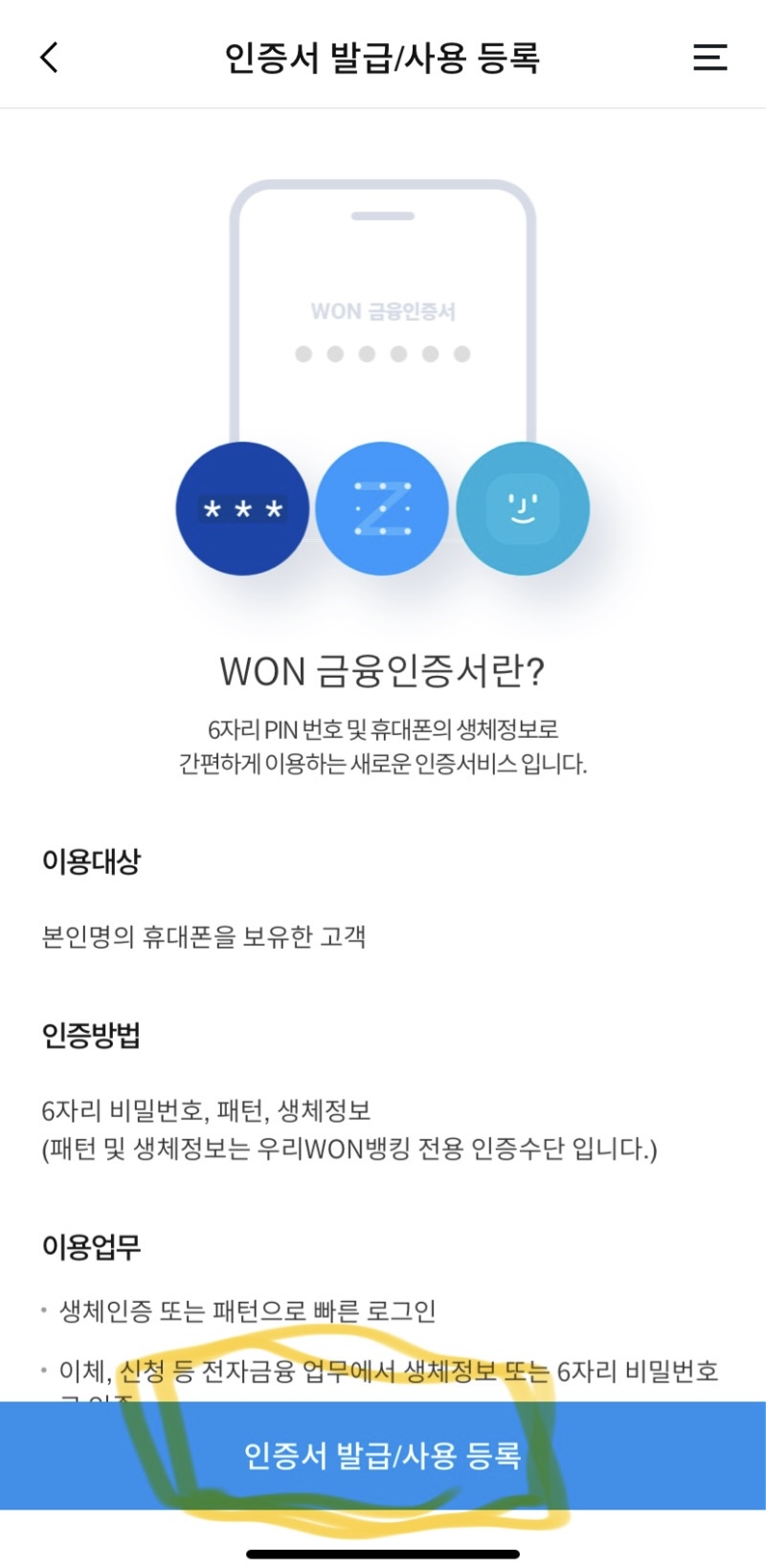아이폰에서 우리은행 인증서를 신규로 발급 받으려 하는데