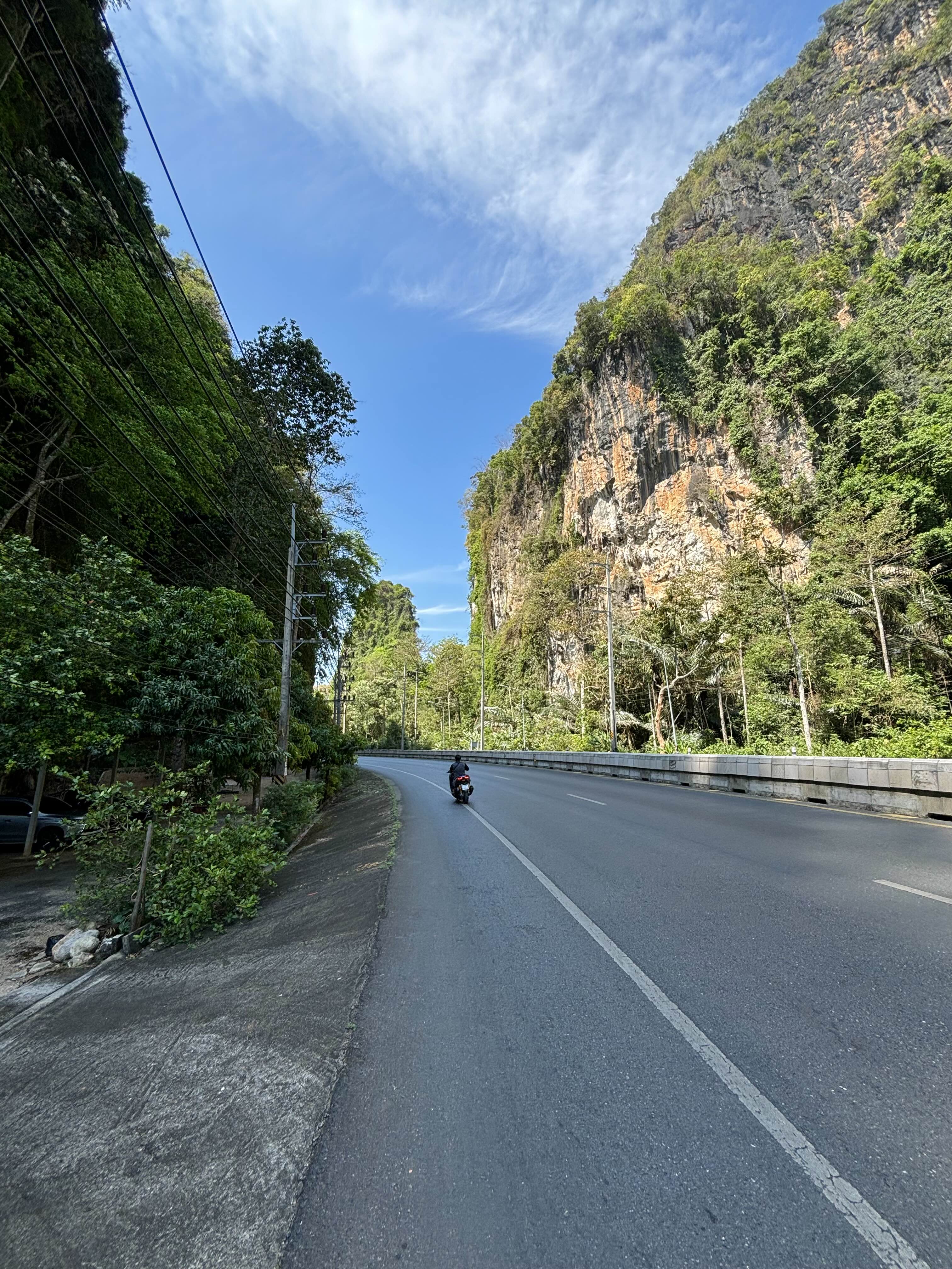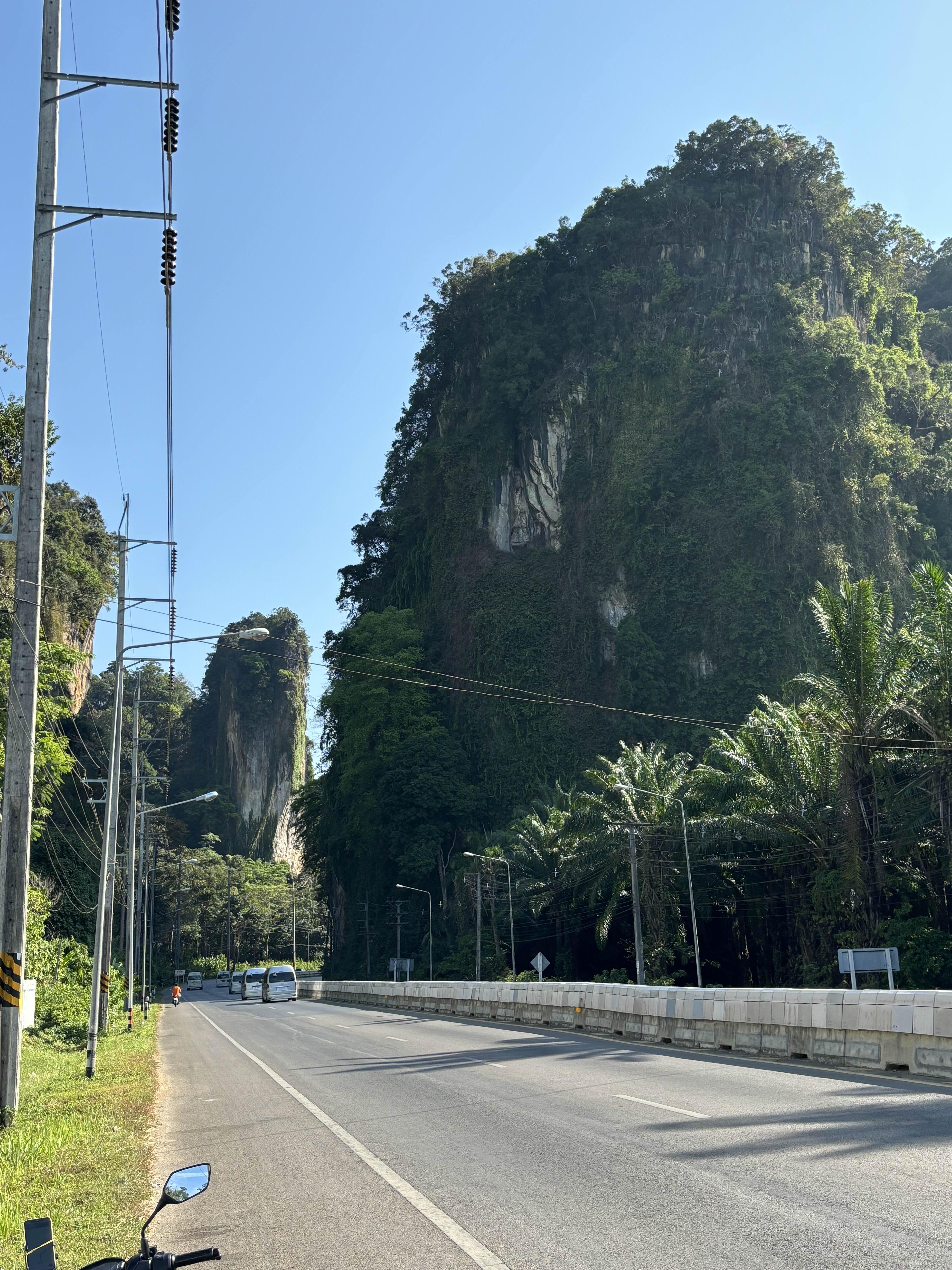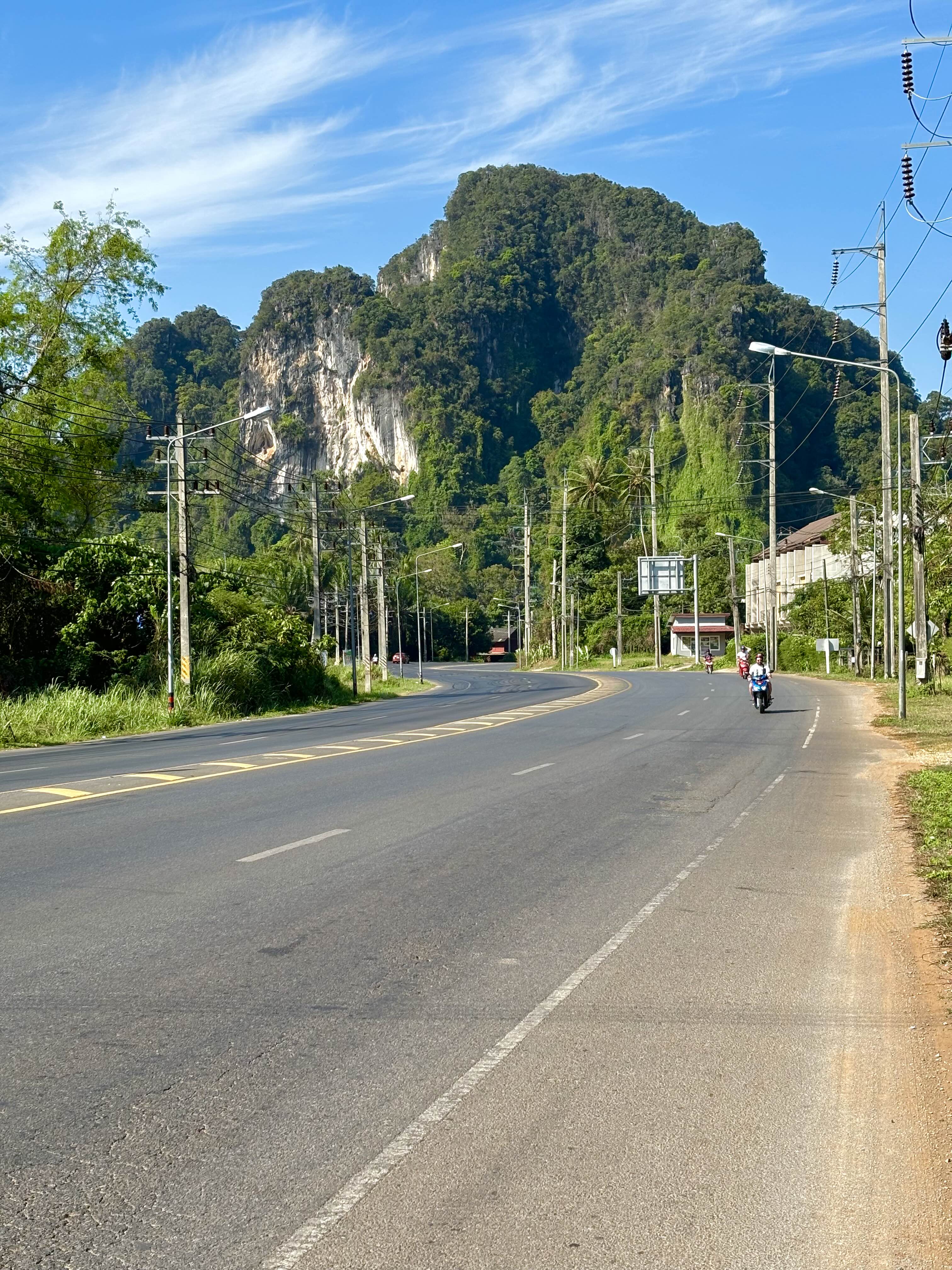 그래서 끄라비 가는 길에 보이는 기암절벽을 보고 끄라비 타운을 다시 한번 바이크 드라이브를 하고 돌아오기로 하고 출발한다