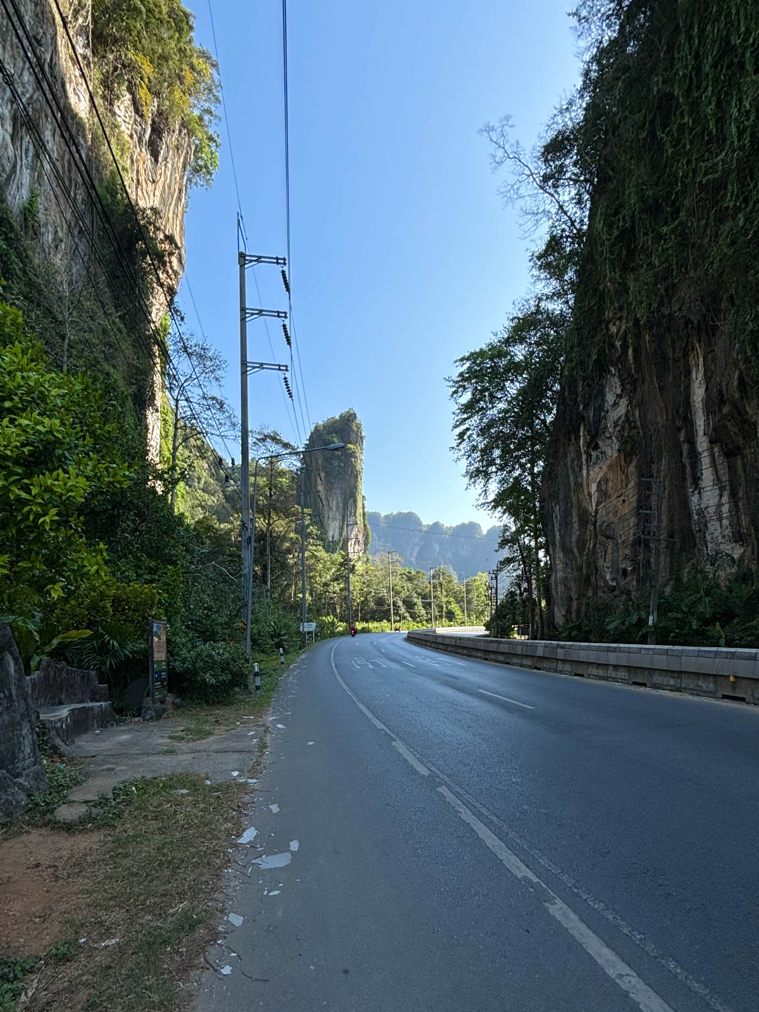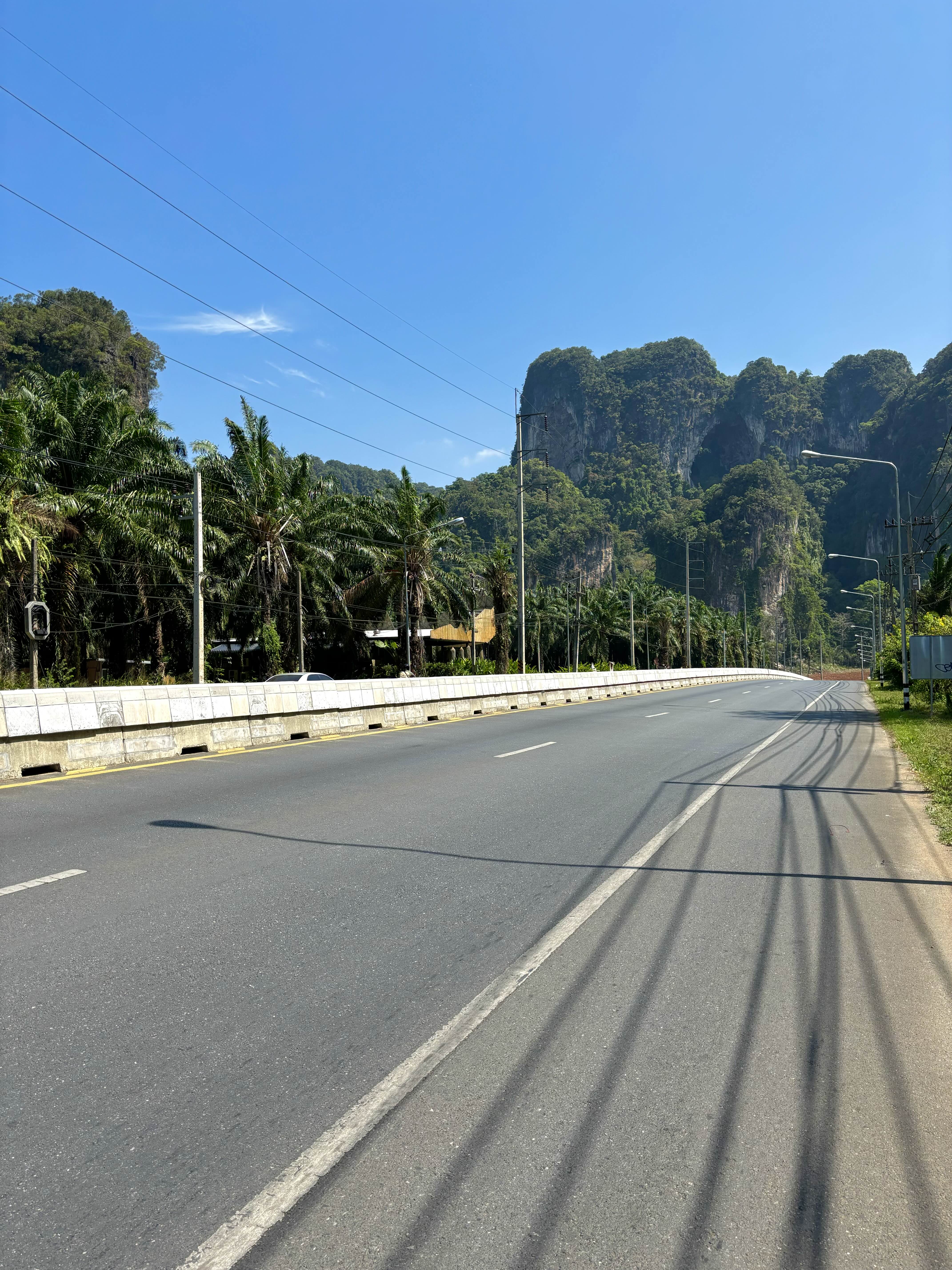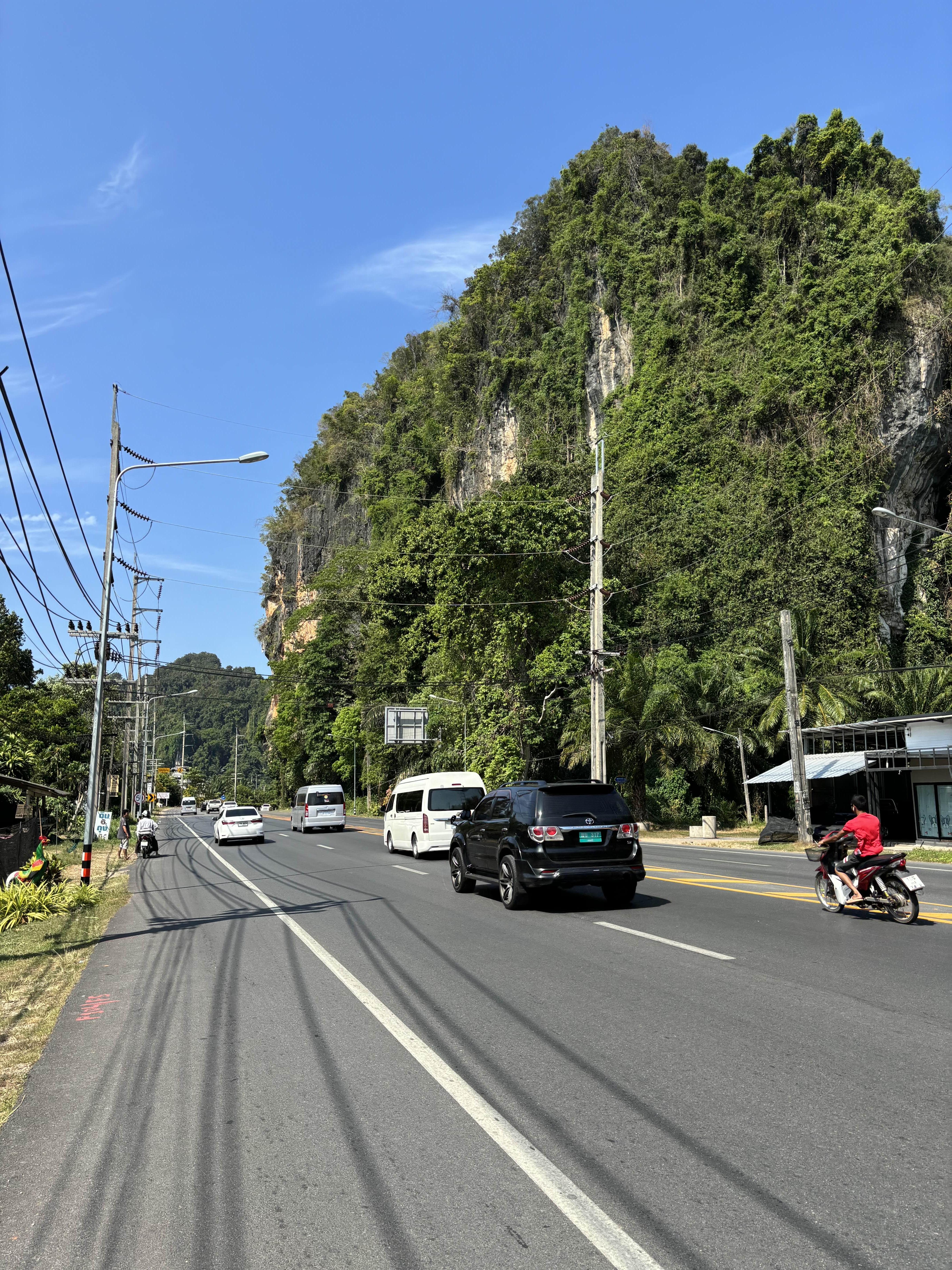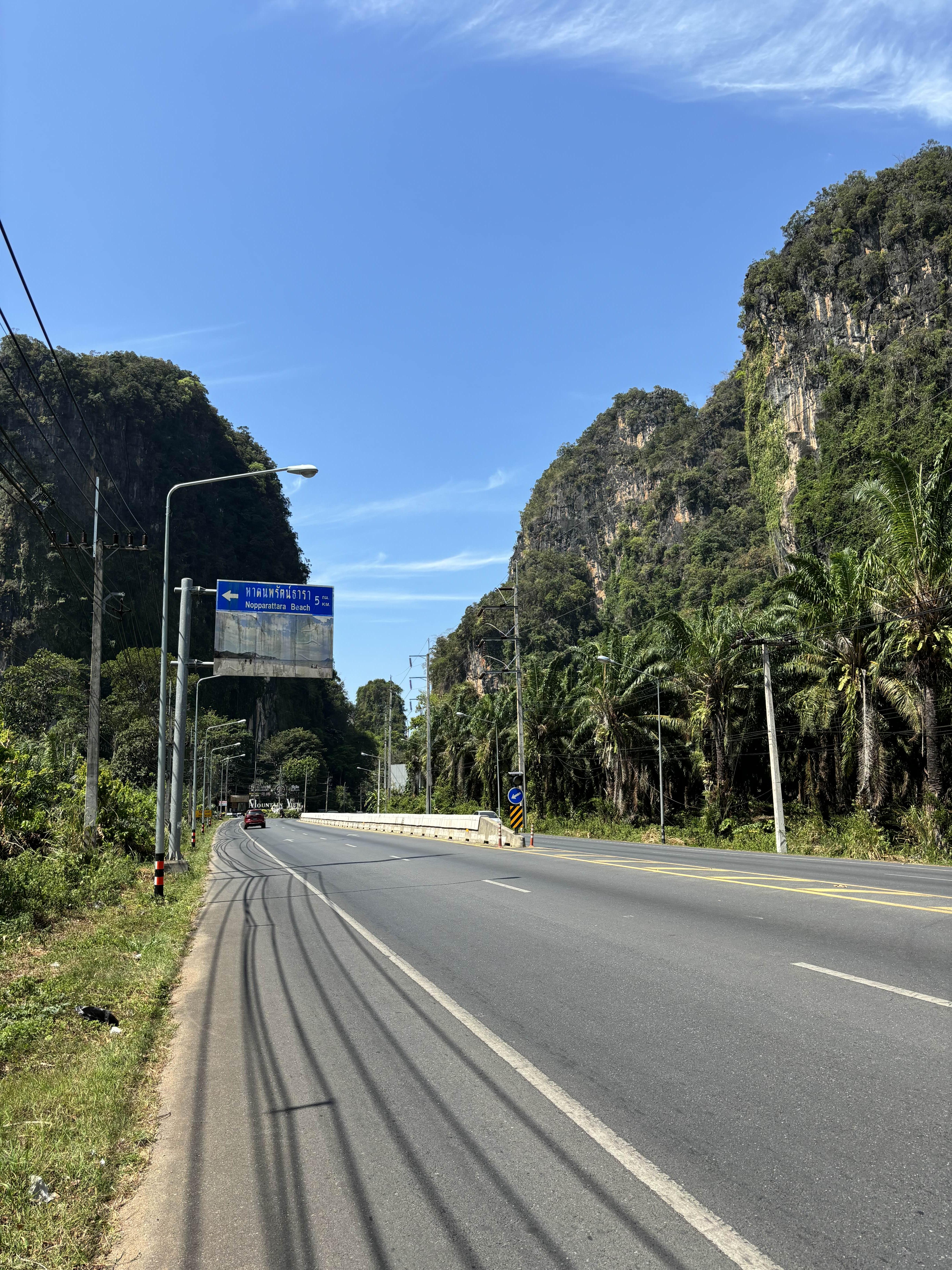 그래서 끄라비 가는 길에 보이는 기암절벽을 보고 끄라비 타운을 다시 한번 바이크 드라이브를 하고 돌아오기로 하고 출발한다
