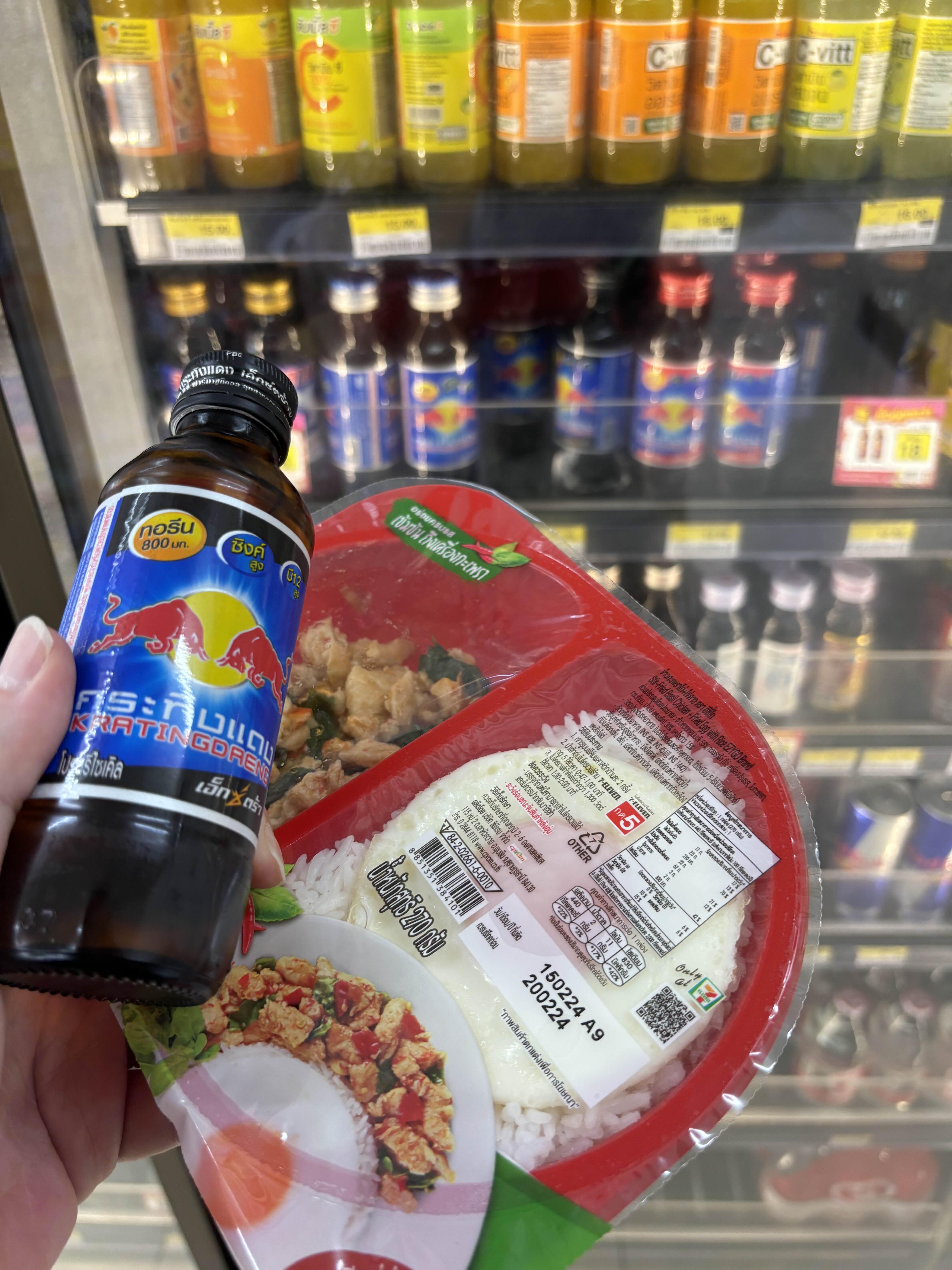 밥도 물론 레인지에 데워준다 개꿀.. 에너지 드링크 포함해서 총 100밧이다. 혜자스런 이 가격…