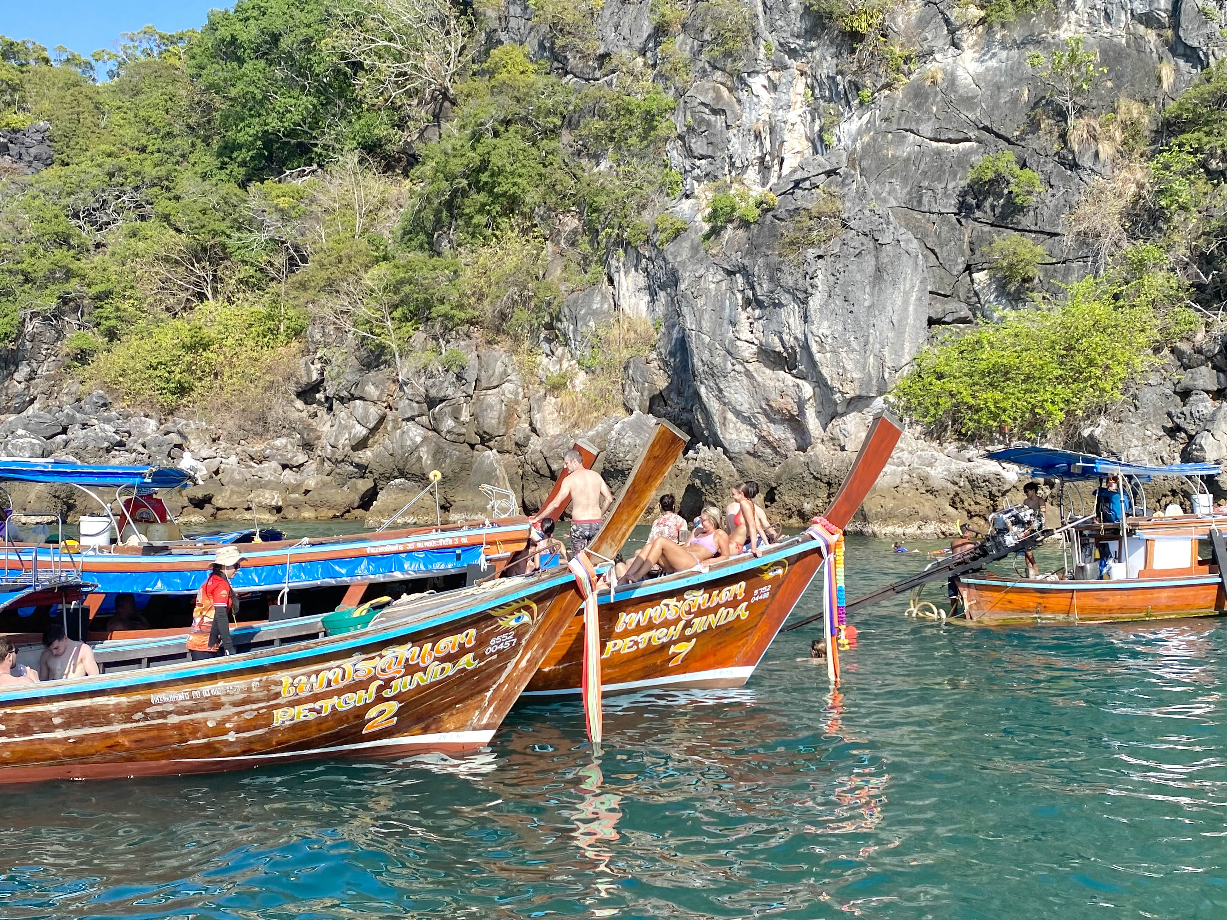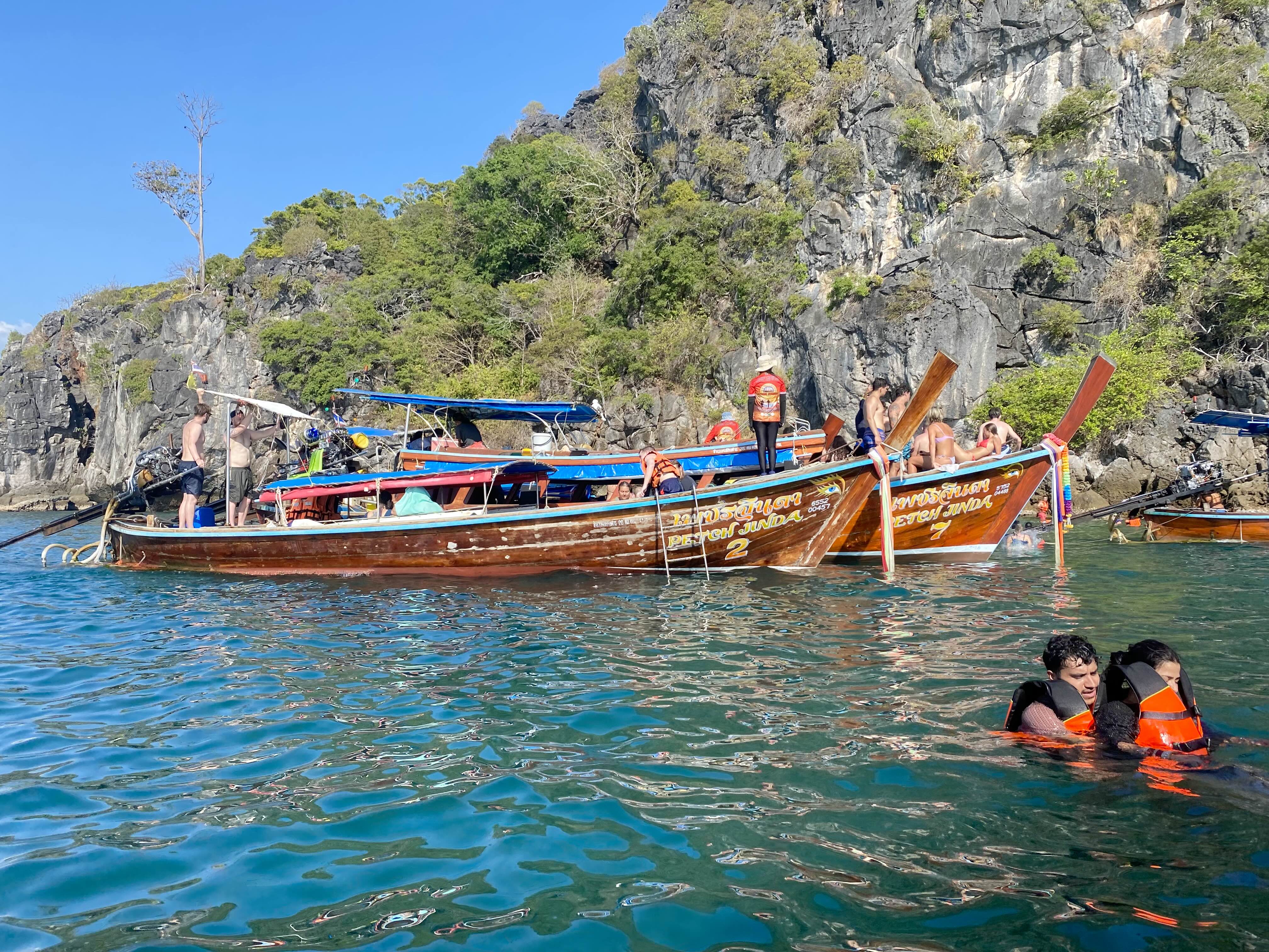 끄라비 7섬 투어의 경우, 가는 곳이 그리 멀지 않아 스피트보트 아닌 롱테일보트 만으로도 충분했고 재밉었다