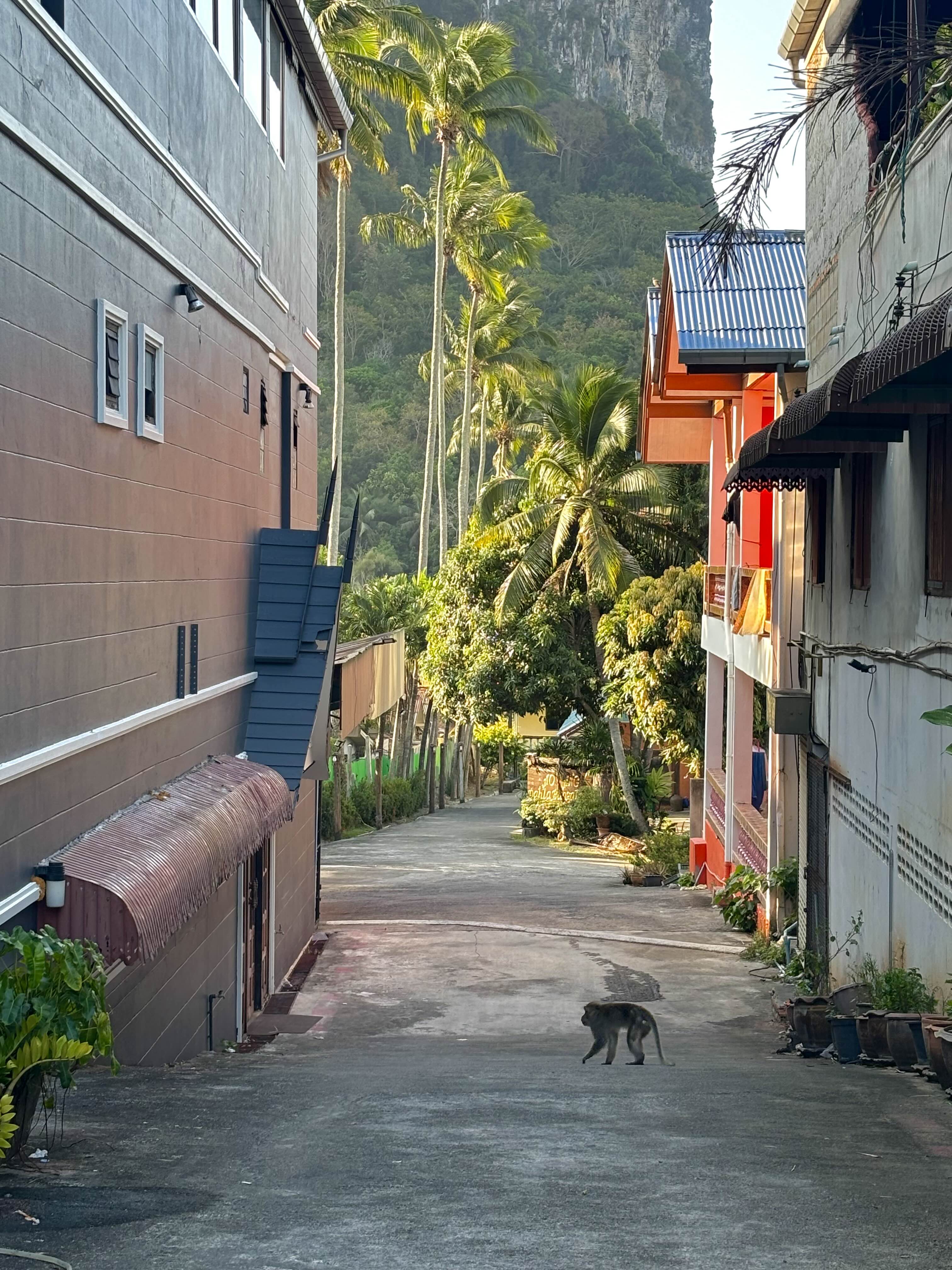 아오낭 골목길에서 지나가는 원숭이를 보다니