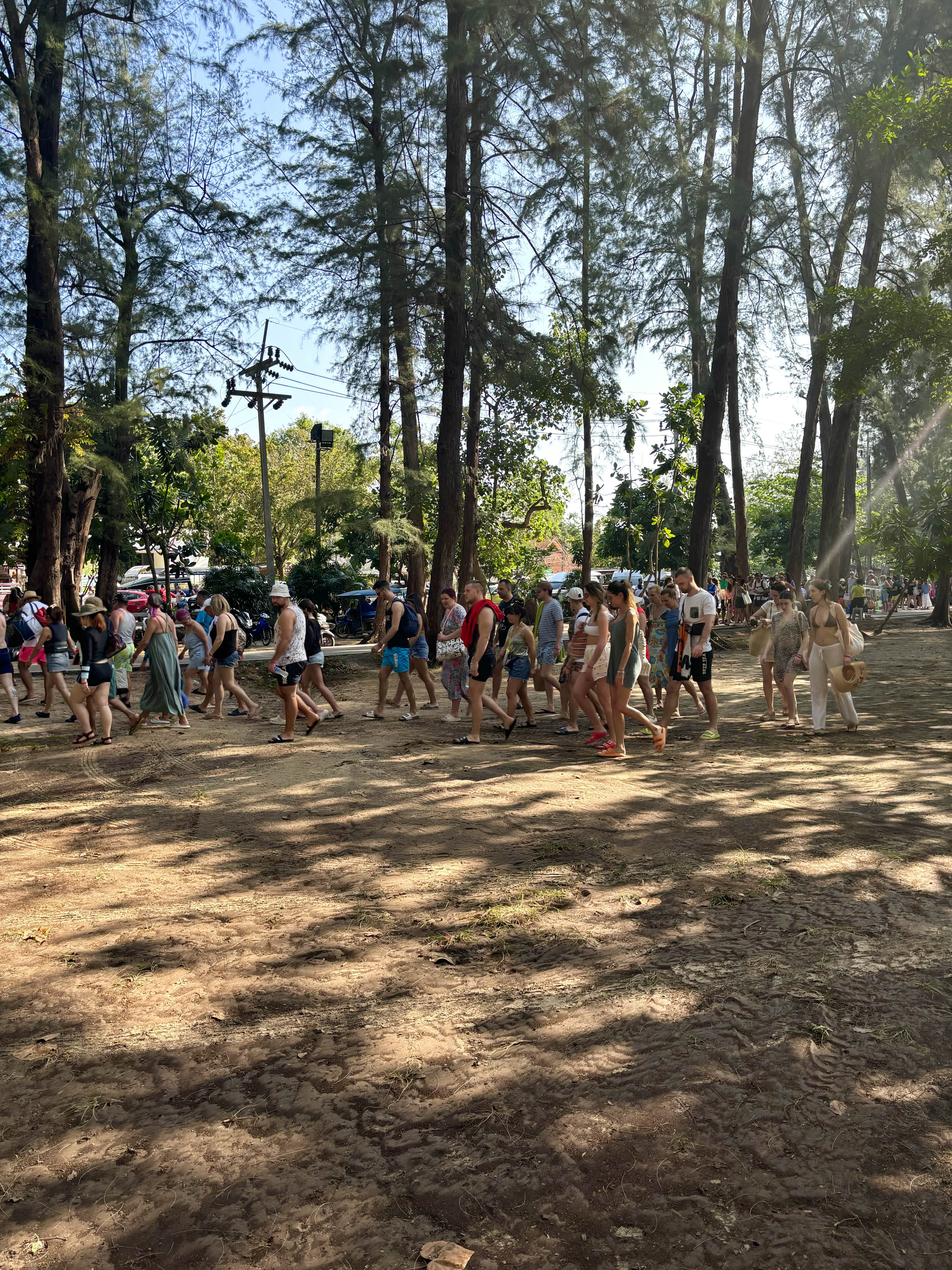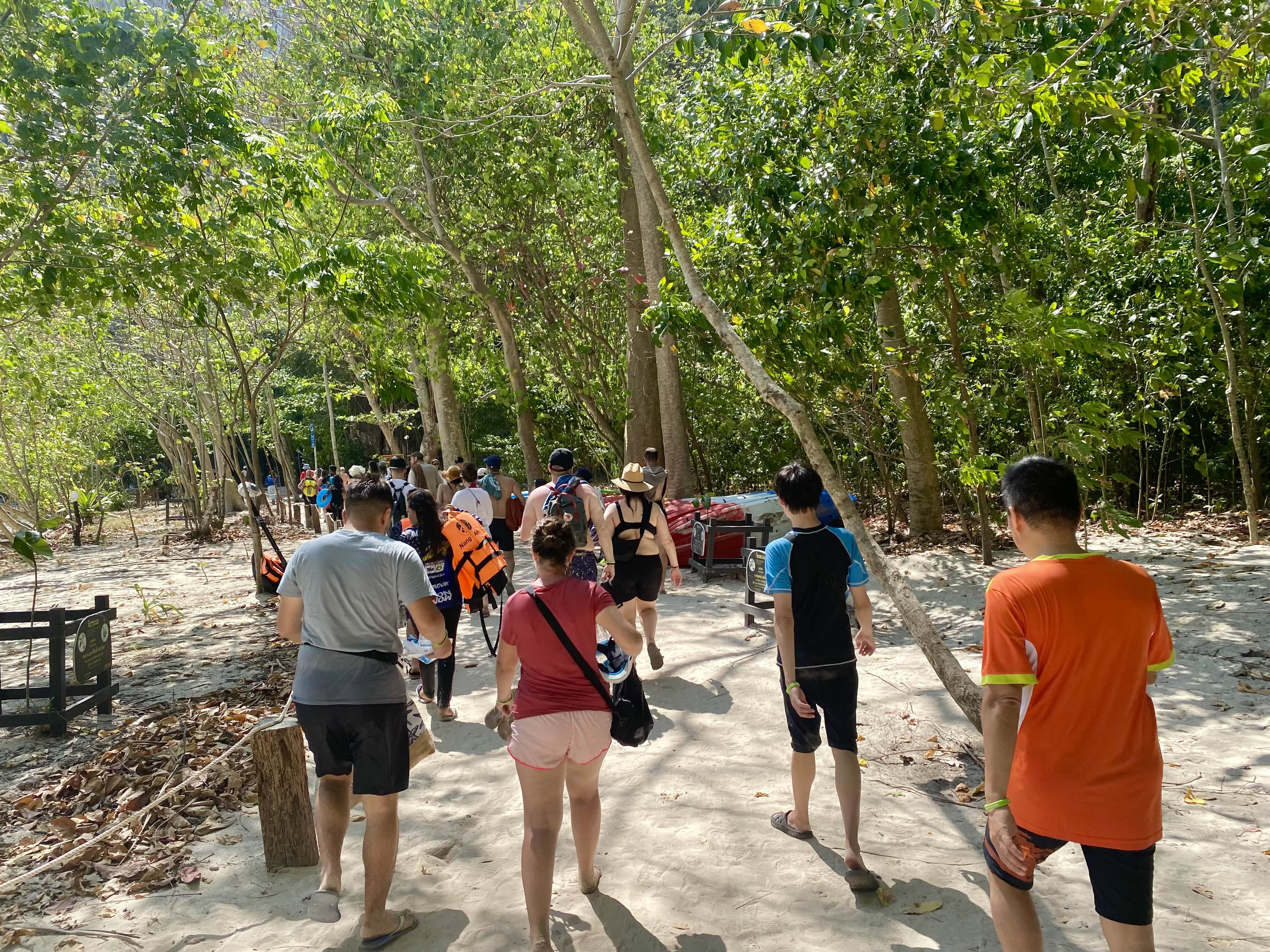사람들이 배에서 다 내리면.. 이제 섬으로 무리를 지어 걸어들어간다