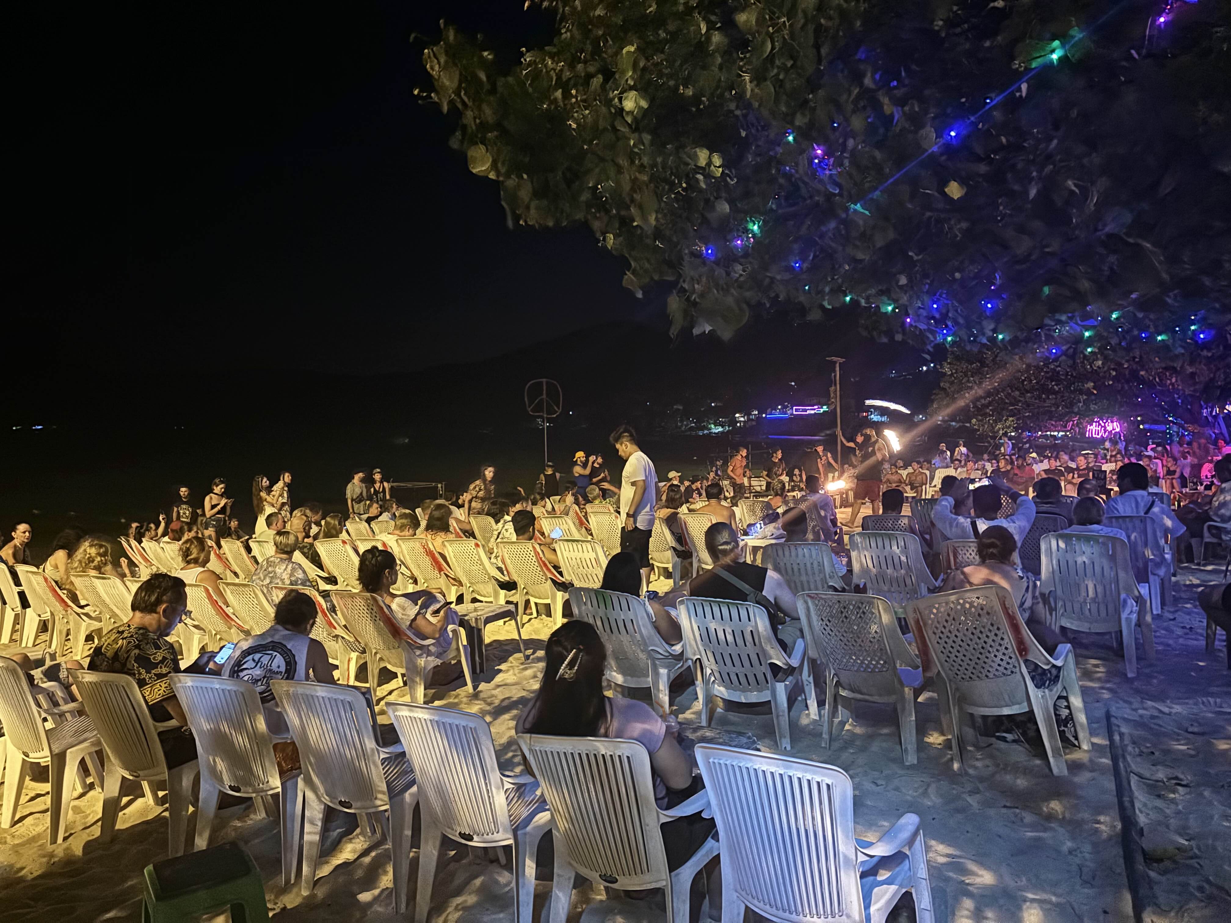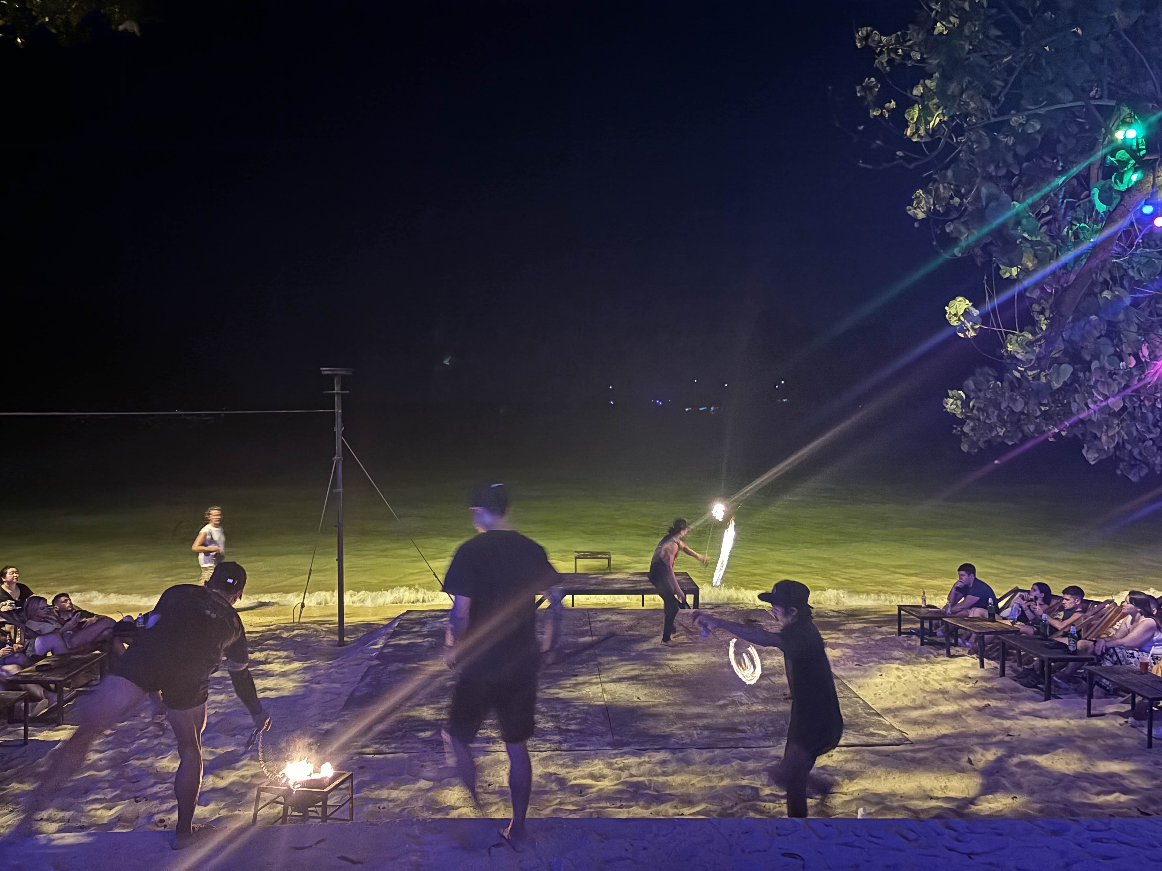 규모는 아오낭에 비할 바는 아니었다 여긴 바닷가 앞 바에서 주최하는 파이어쇼인거 같았다