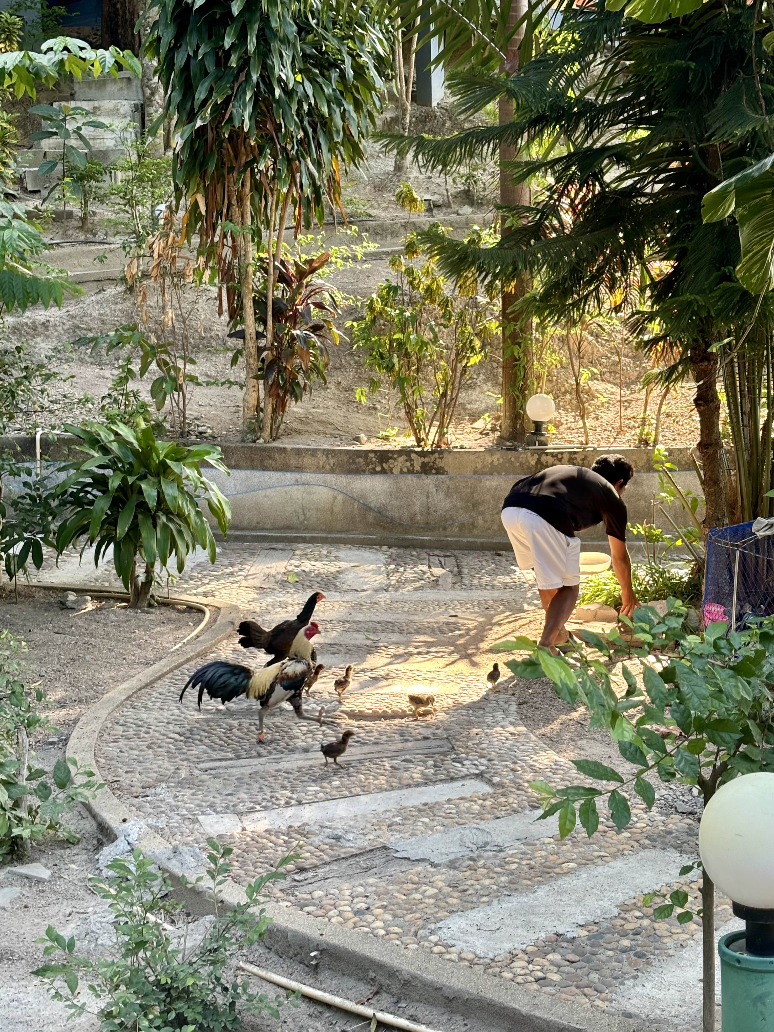 닭이 모이를 먹으러 주인을 졸쫄 따라가는 모습 이외에는 너무나도 조용한 아침 풍경이었다