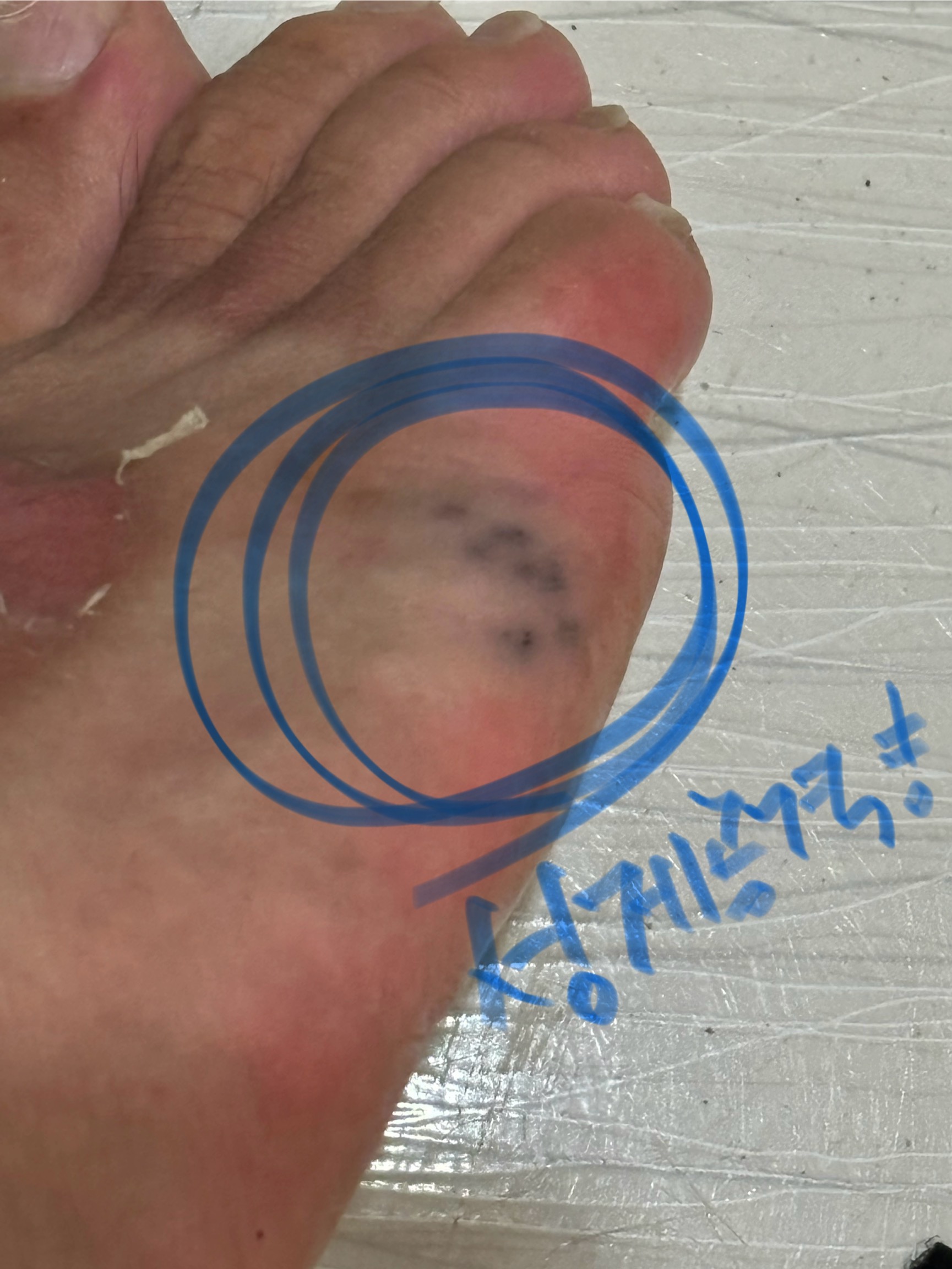성게에 찔린 부위가 점점 더 검게 변해가는 거 같다