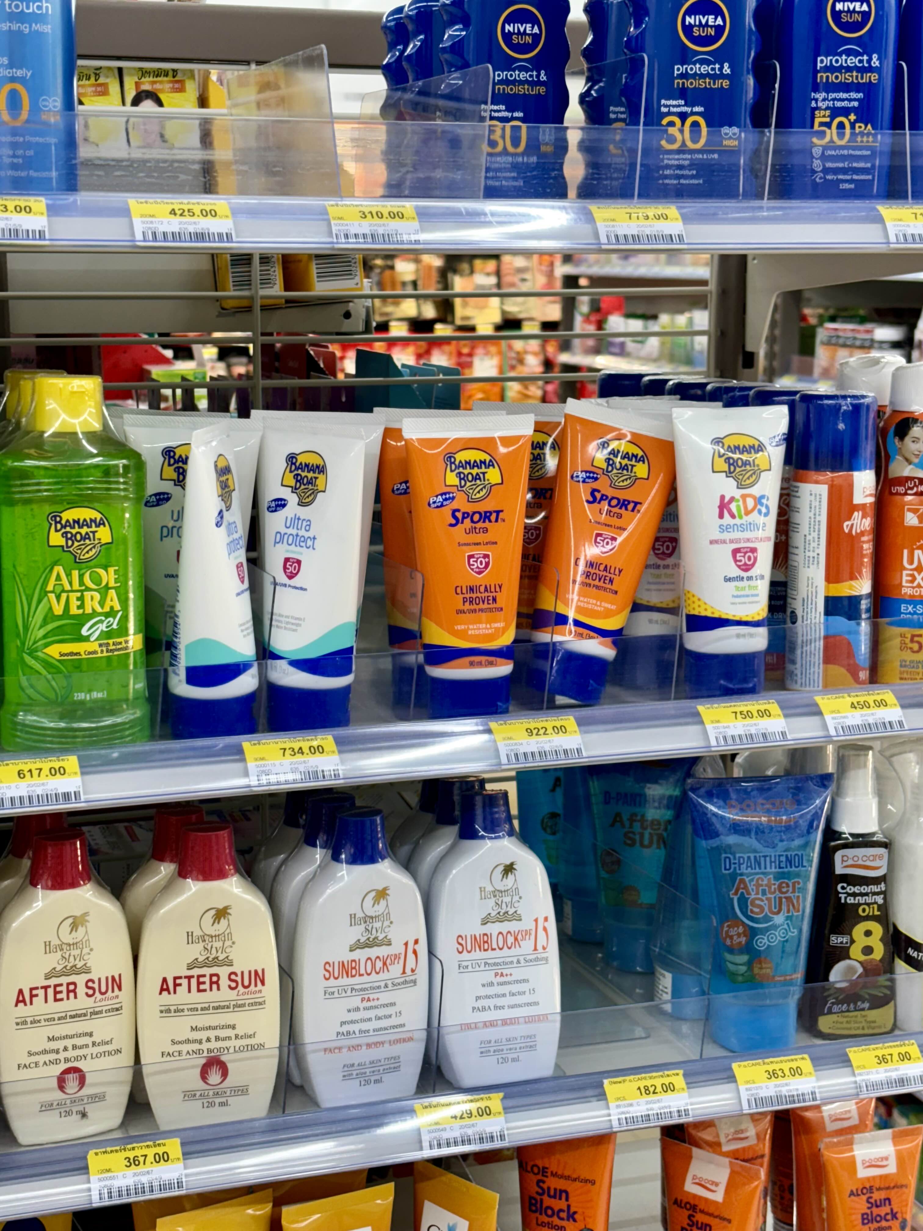 성게에 찔려 절뚝 거렸음에도 잠시 들린 7/11에서 찍은 바나나보트 선크림 가격