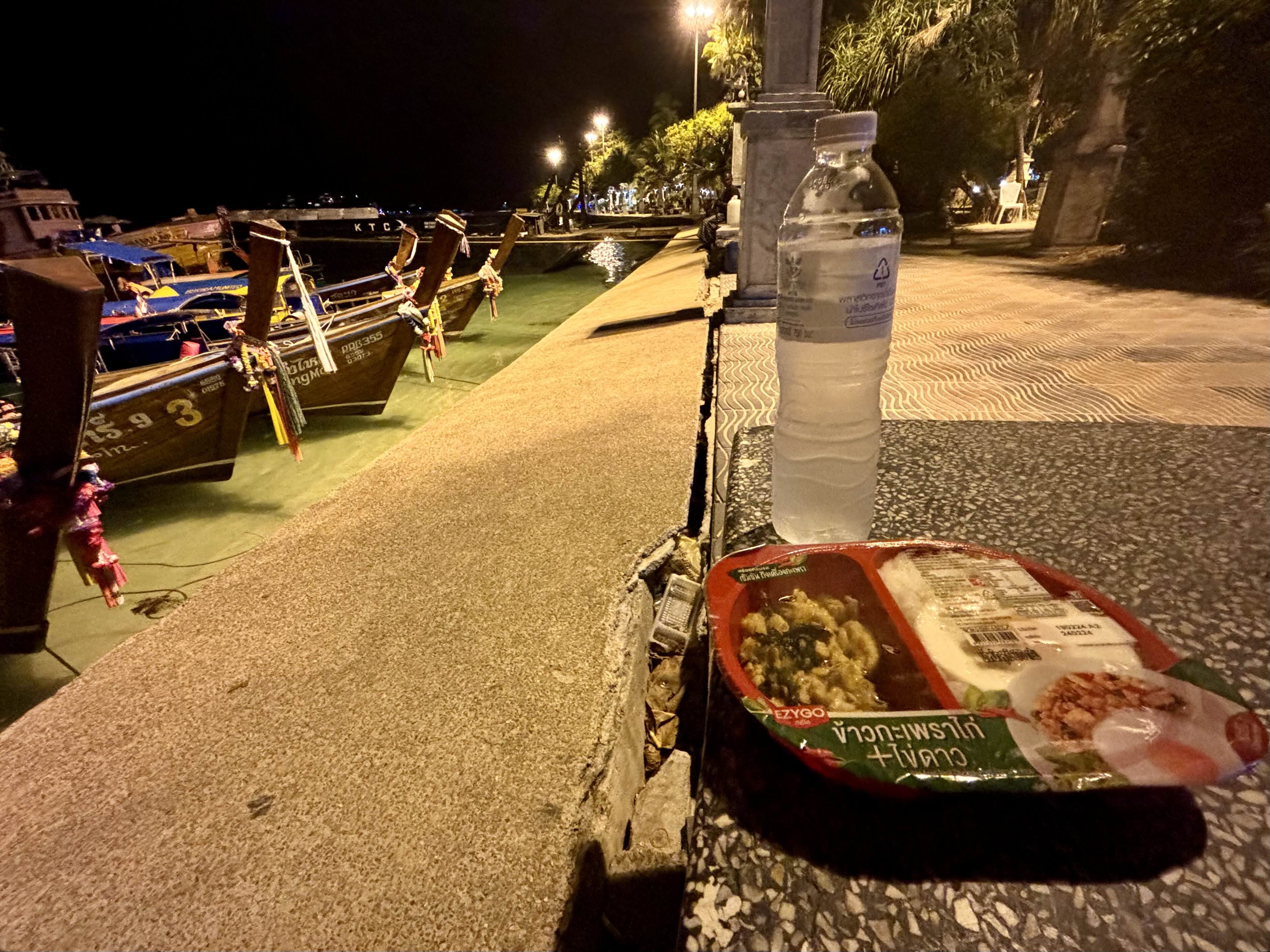 톤사이항 벤치에 앉아 밥을 먹었는데 저녁시간이 되니 어쩔 수 없이 모기들이 달겨들기 시작한다